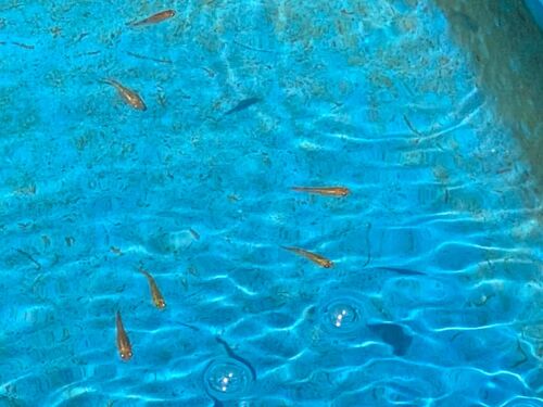 太陽の光を浴びて元気に泳ぐ夜桜。その名前に似つかわしくない光景ですが、元気そうで何より。 120cm×75cmという大きなFRPの舟で10匹を飼育という贅沢夜桜。らんちゅうをやっているので大きな舟や池がたくさんあるのです。大きな池でのびのびと泳がせ…