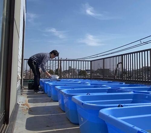 今日の東京地方は晴天ながら風が強く、屋上での作業は長時間はできませんでした。が、明日以降も天候のいい日を見計らって少しずつ屋上作業を進めていきたいと思います。 堀切めだかではご希望のお客様に積極的に養魚場を公開しています。店舗と養魚場を含め…