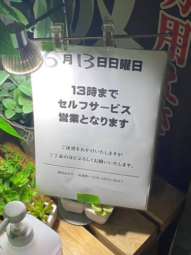 6月13日日曜日は店主私用のため11時半から13時までセルフサービス営業となります。 13時以降は通常営業となります。 2Fのレストラン「季旬」は通常通り11時半開店でランチタイム営業をしております。 どうぞよろしくお願いいたします。 にほんブログ村 ブロ…