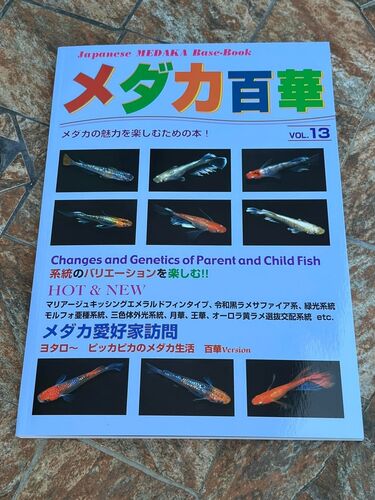 メダカ百華第13号が入荷しました。早速サーっと全ページをめくってみましたが今回も力作感がすごいです。今夜、一杯やりながら熟読するぞと。これが年2~3回のお楽しみ。 堀切めだか1号店にて店頭販売を開始。 毎号注目すべきは背表紙のメッセージ。編…