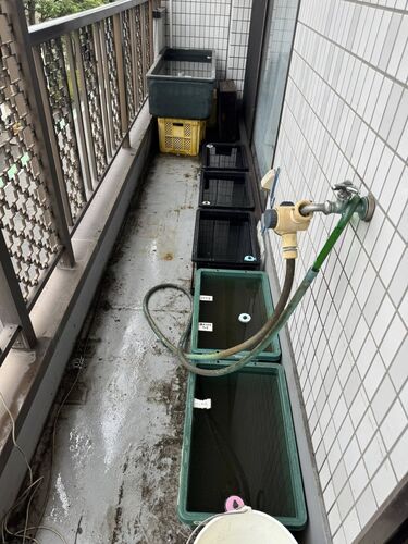 自宅ベランダ。20リットル水槽5個と130cmの池ひとつ。ここにいるのは野生メダカのみ。(長生村メダカ=絶滅危惧種対象外、昨日の記事参照) 改良メダカ流行以前の昭和の時代のメダカ愛好家さんの飼育スタイルはこんな感じだったのでしょう。 ここはメダカ…