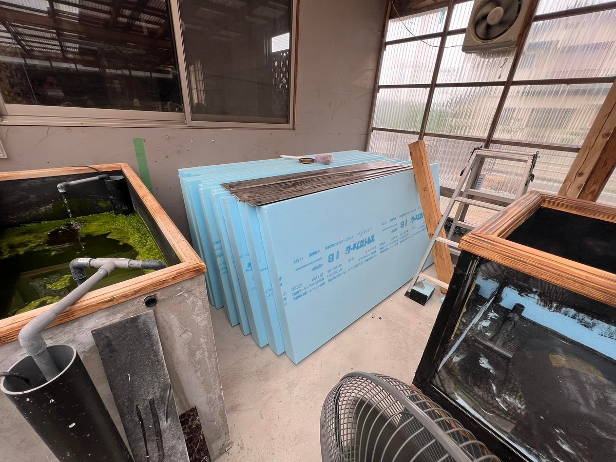 こちらは屋内養魚場。冬もたくさんのメダカを全力で造ることができます。