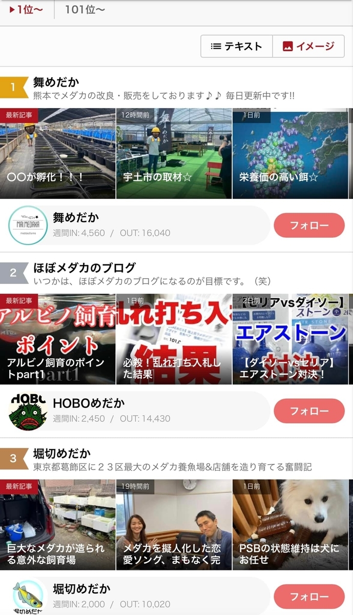 基本的には毎日2回の更新をしていますが、そのモチベーションの源は多くの方にご覧いただいていることに他なりません。そして読者の数に直結するのが「にほんブログ村メダカ部門ランキング」