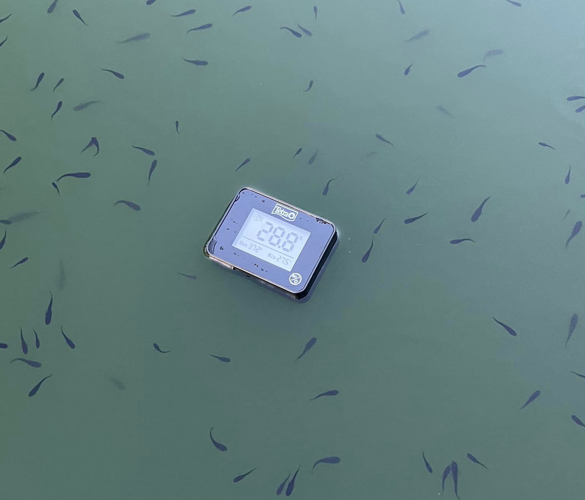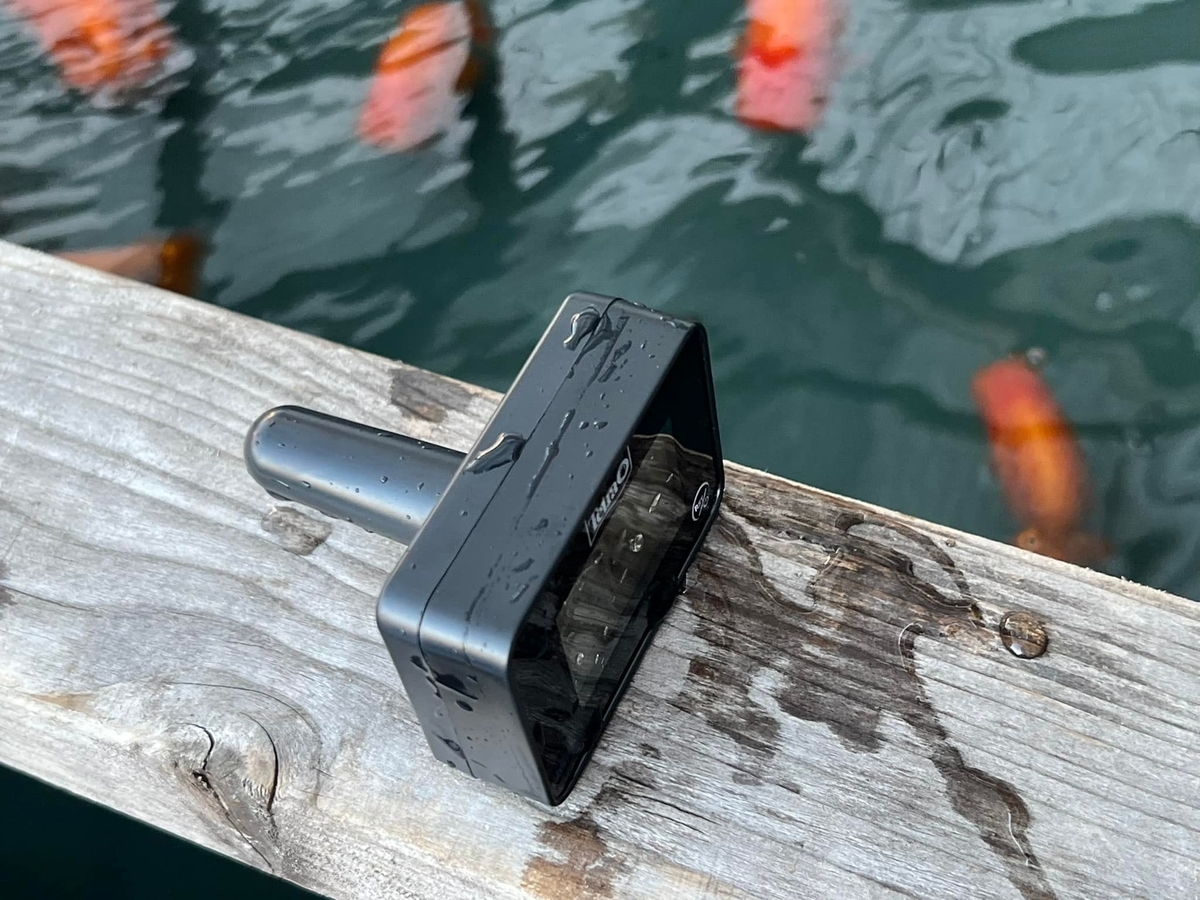 浮かべる水温計のサンプル品を持ってきてくださいました。