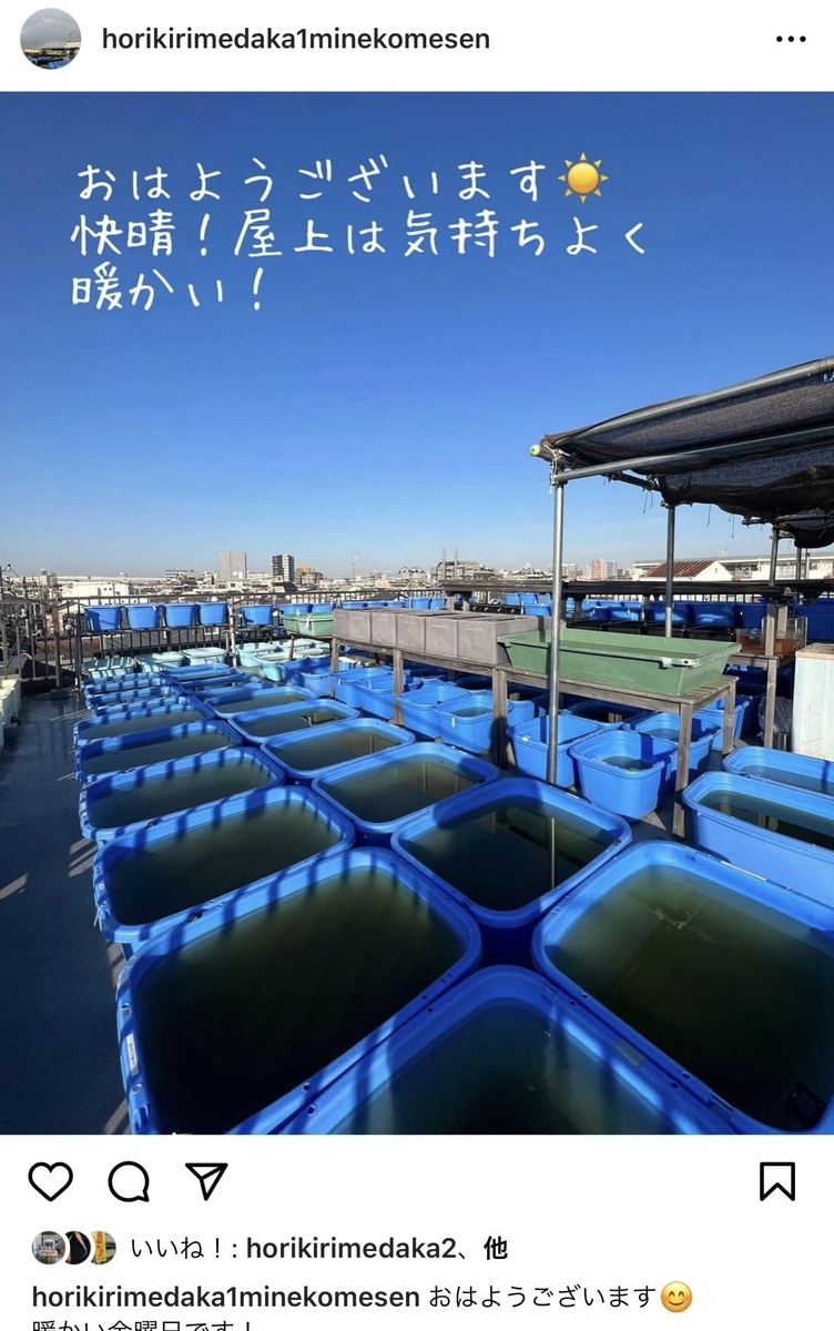 9店舗もあるとインスタが堀切めだかアカウントの投稿でにぎやか。インスタは各店にアカウントがありそれぞれの店長が更新しています。
