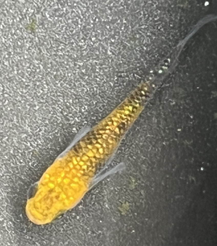 昨年5月に命名した初代「神武天皇」。ユリシス×サファイアから出たメダカ。