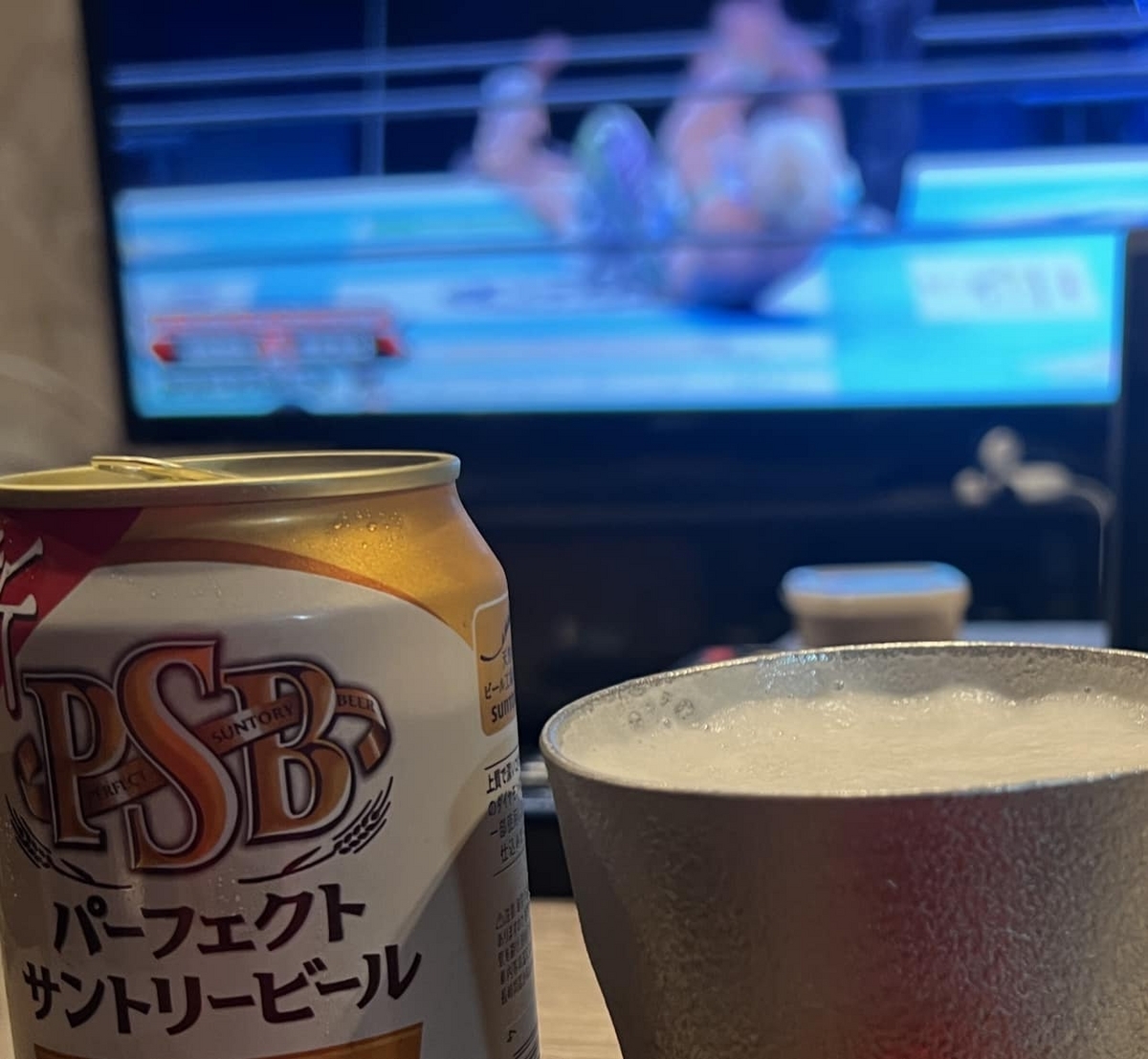 新日本プロレスの動画配信サービスで今行われているG1クライマックスを視聴。PSBを飲みながら。。。
