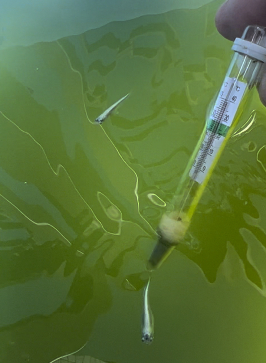 このレベルの水温で気をつけるべき点は、酸欠、急速な水質悪化、煮魚になってしまうこと、でしょうか。