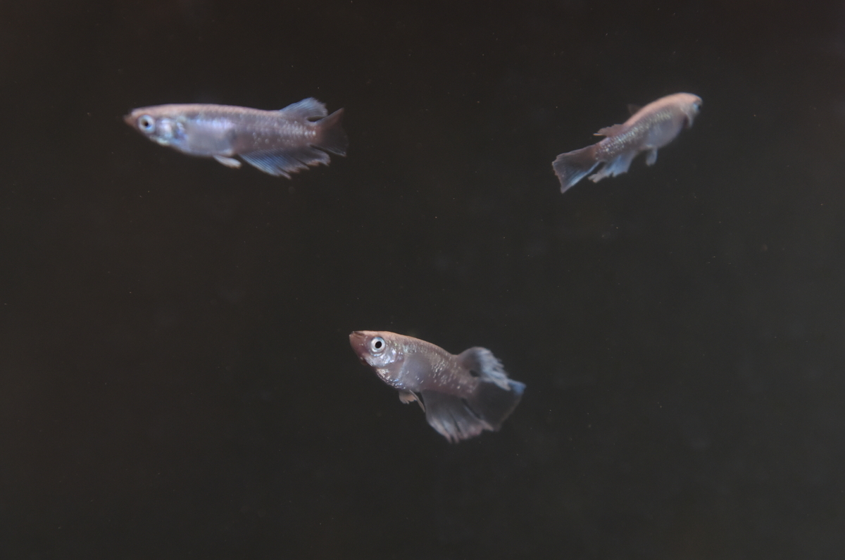 その強い照明にメダカだけが反射してこのようになります。背景や水の濁り、ガラス面の汚れは映りません。