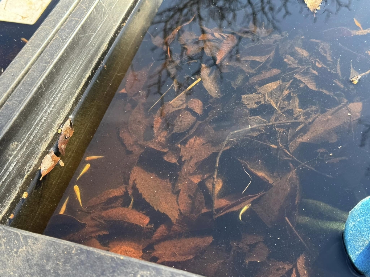 1週間前に設置した枯葉水槽。こちらはまだブラックウォーター化していません。