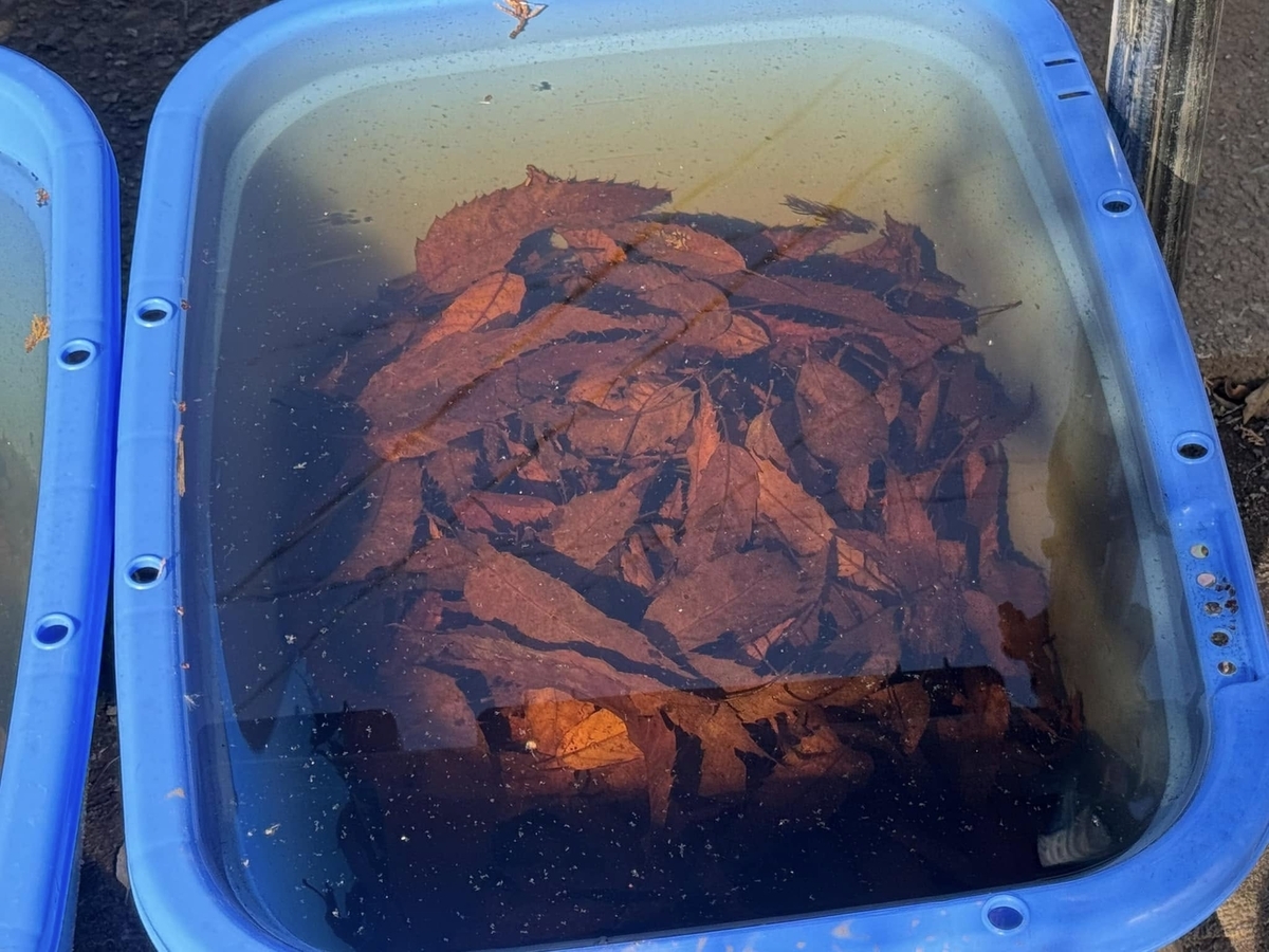 2週間前に設置した枯葉水槽。こちらは徐々にブラックウォーター化してきました。