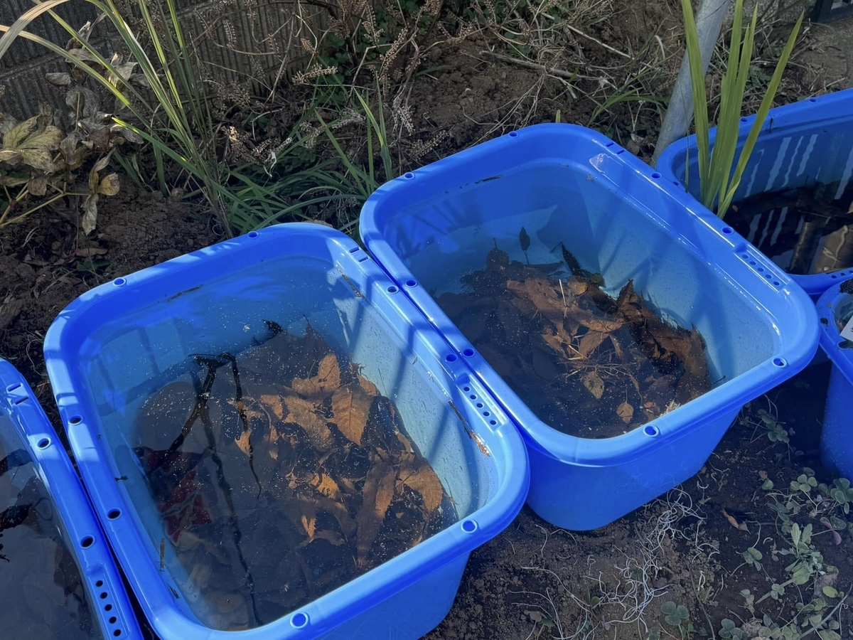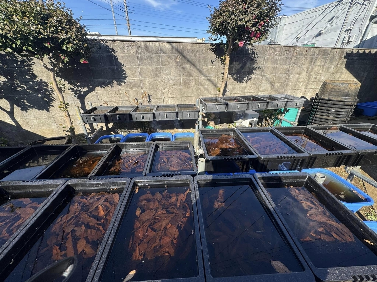 堀切めだか全体の3000個から4000個の水槽の枯葉水槽化を推進しています。